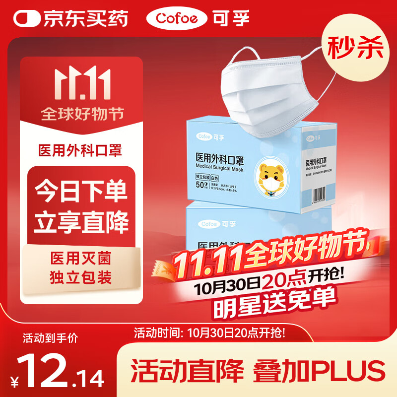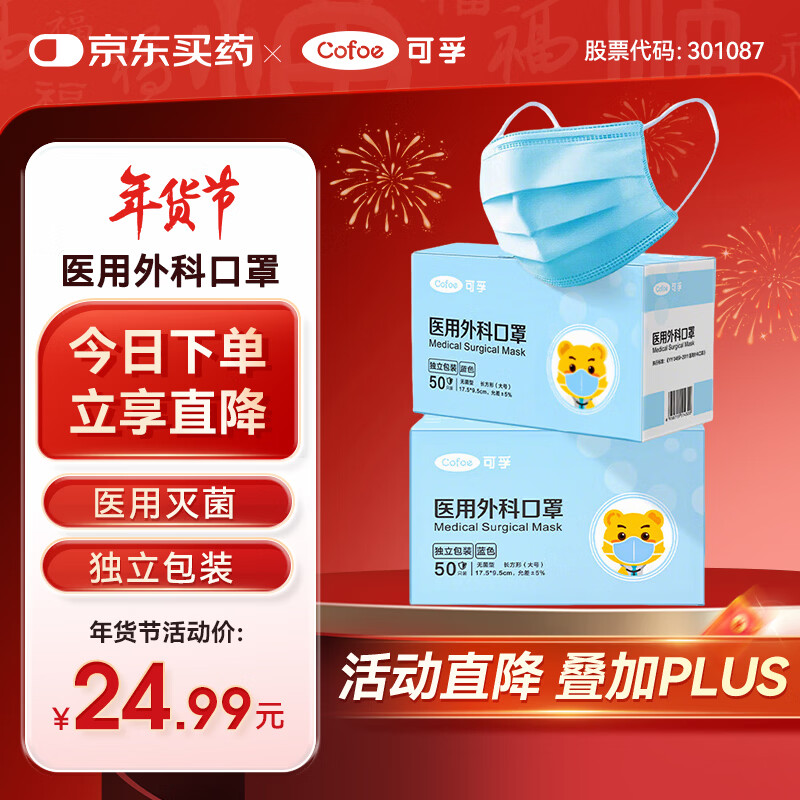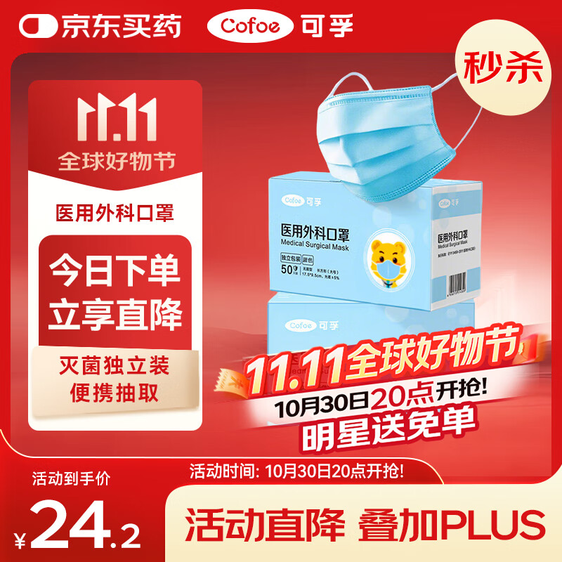可孚医用外科口罩一次性口罩医用灭菌级保暖过敏性鼻炎100只独立装