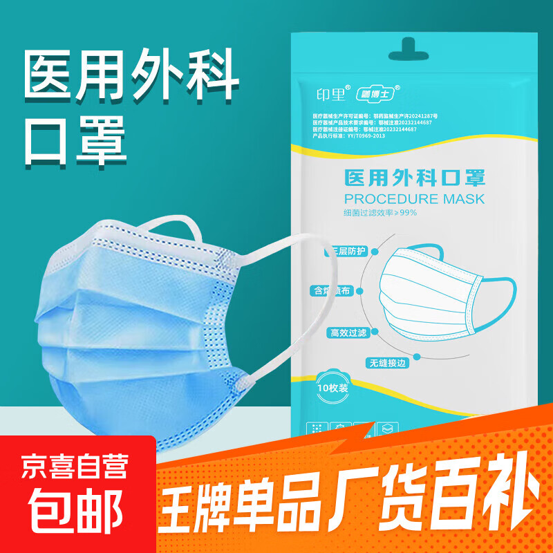 医用口罩独立包装正规一次性三层防抗病毒飞沫成人医院医护用 10片装医用外科口罩/1袋
