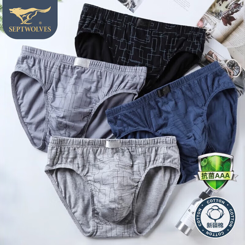 七匹狼7A抗菌内裤男三角男士纯棉大弹力内裤裤衩透气舒适运动裤头软棉棉
