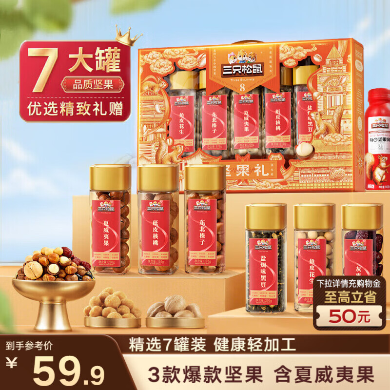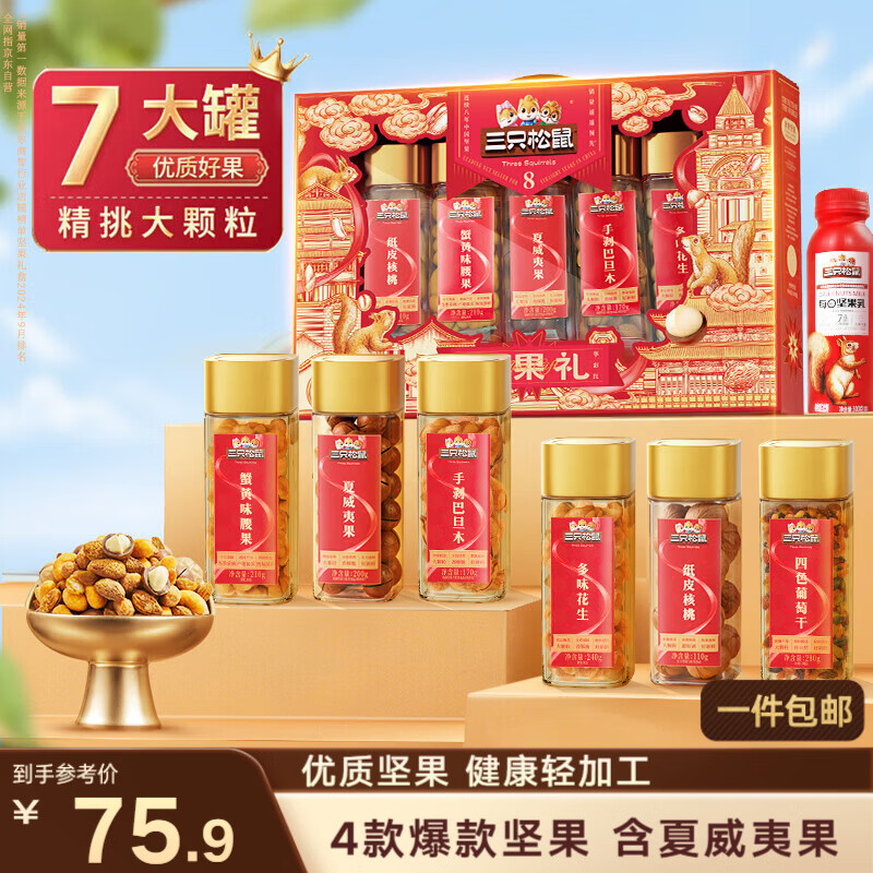 三只松鼠坚果零食礼盒1255g 零食礼包核桃夏威夷果榛子核桃送礼企业团购