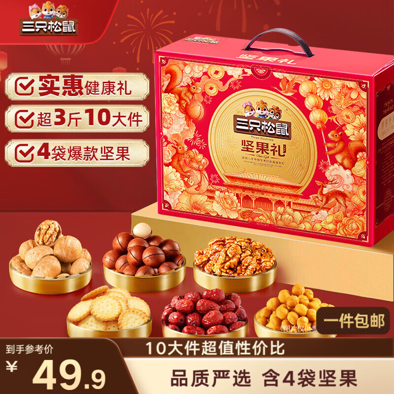 三只松鼠坚果零食礼盒1621g/10件混发 零食礼包炒货夏威夷果核桃送礼团购