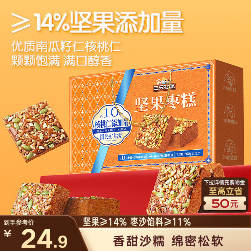 三只松鼠坚果枣糕礼盒600g 红枣健康糕点点心零食蛋糕早餐年货送礼团购