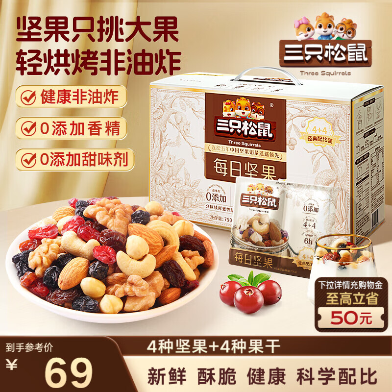 三只松鼠每日坚果孕妇健康混合干果果仁零食礼盒休闲食品节日送礼坚果礼盒 【4+3】每日坚果750g/30袋