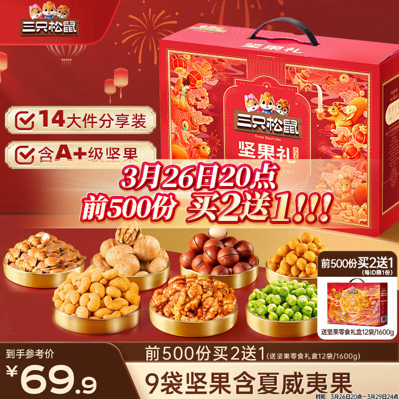 三只松鼠坚果零食礼盒1600g/12件零食大礼包送礼夏威夷果核桃企业团购