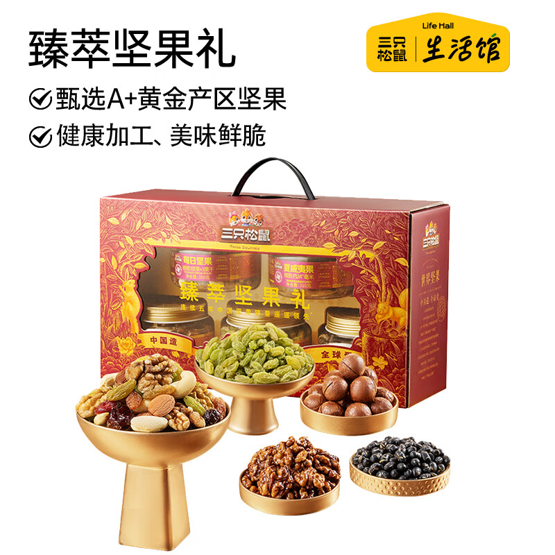 三只松鼠生活馆 坚果礼盒5罐装臻萃礼1590g节日送礼休闲零食【高端原料】 臻萃坚果礼5罐装/1590g