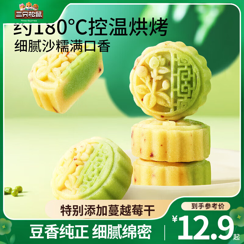 三只松鼠坚果+蔓越莓豆沙糕绿豆学生上班族特产伴手礼老式糕点心茶点零食 【内含12包】蔓越莓豆沙糕500g