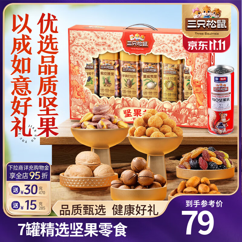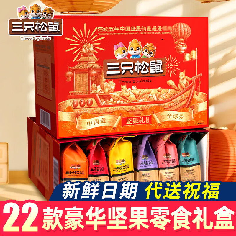 三只松鼠坚果每日坚果礼盒节日送礼休闲零食食品炒货年货礼盒团购 坚果礼国红款11袋/1385g