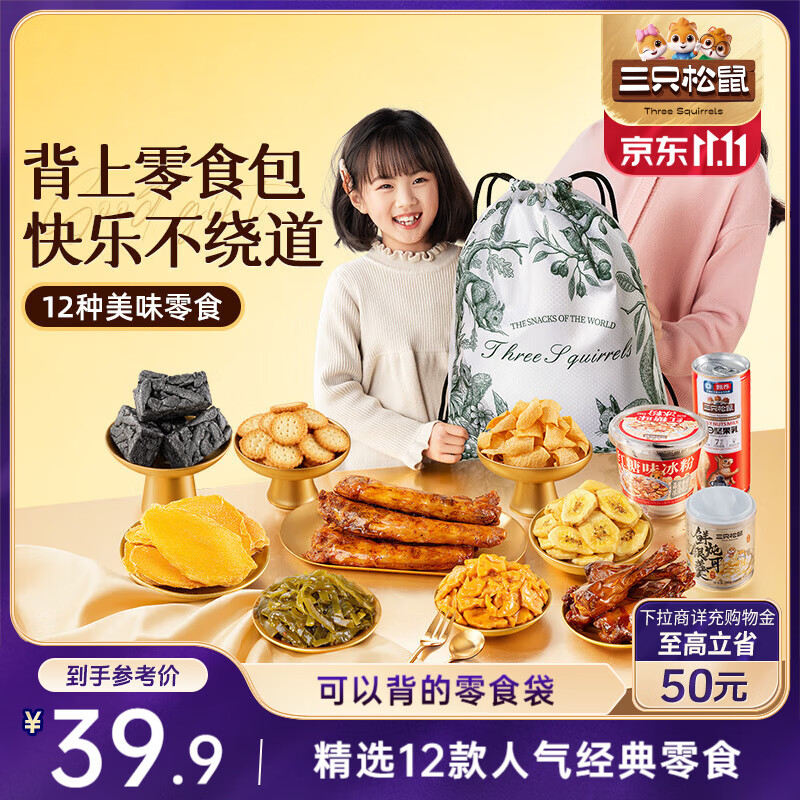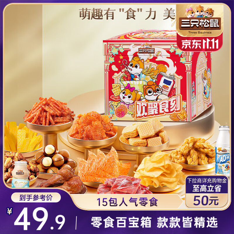 三只松鼠巨型零食大礼包送女友礼物肉食类坚果成人整箱网红休闲小吃豪华版 37款共152包/小仙女礼盒1350g