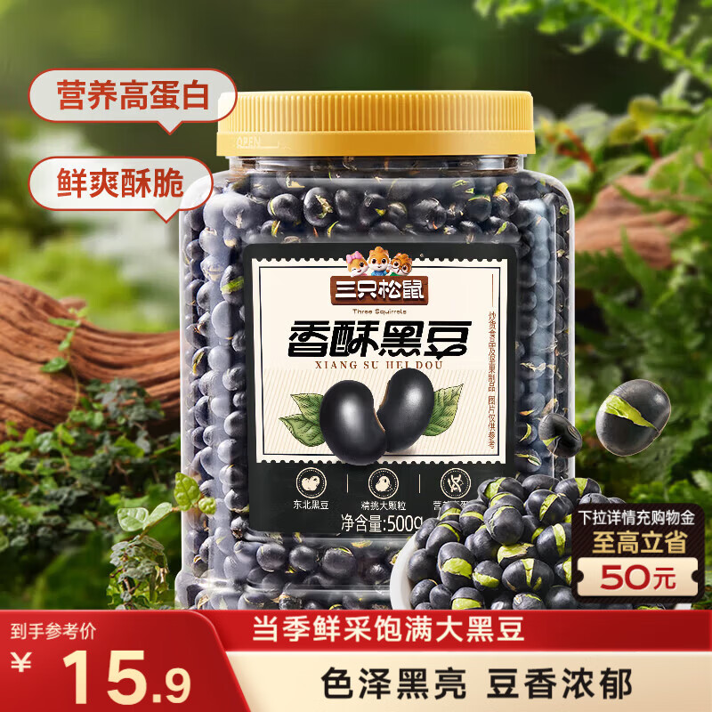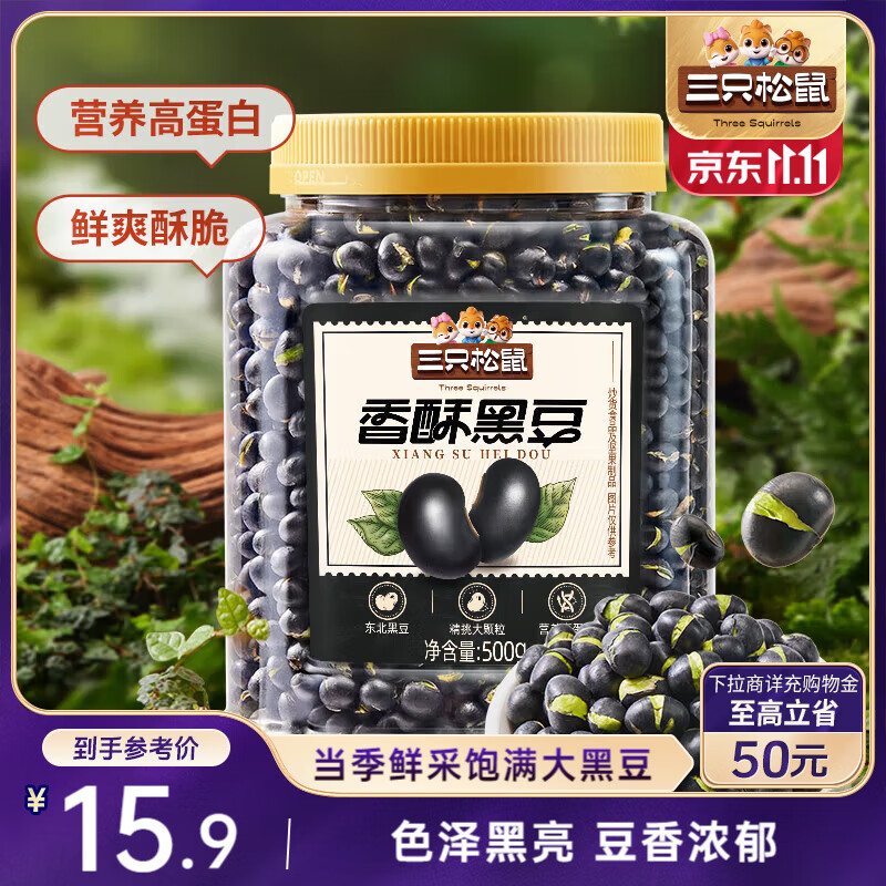三只松鼠盐炒黑豆500g/罐 熟黑豆香酥坚果炒货即食高蛋白休闲零食五谷杂粮