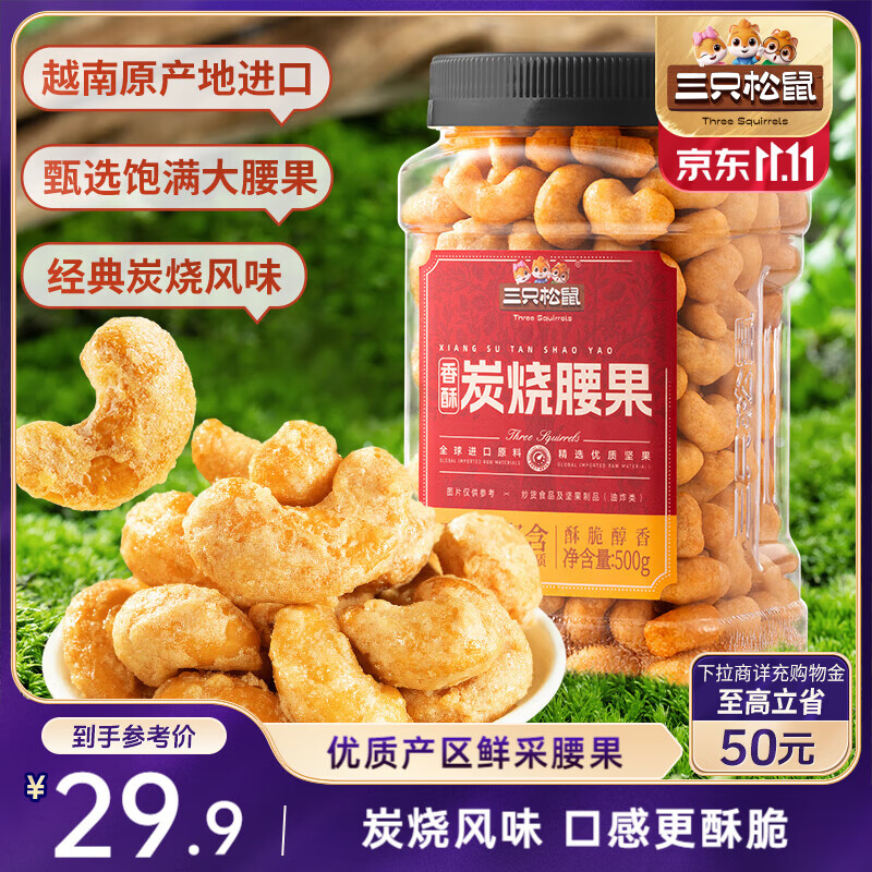 三只松鼠香酥炭烧腰果500g/罐装坚果炒货干果腰果仁休闲零食送礼