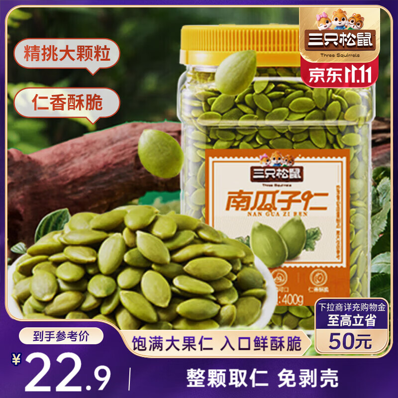 三只松鼠南瓜子仁400g罐装原味 新疆内蒙熟籽仁原味坚果炒货零食