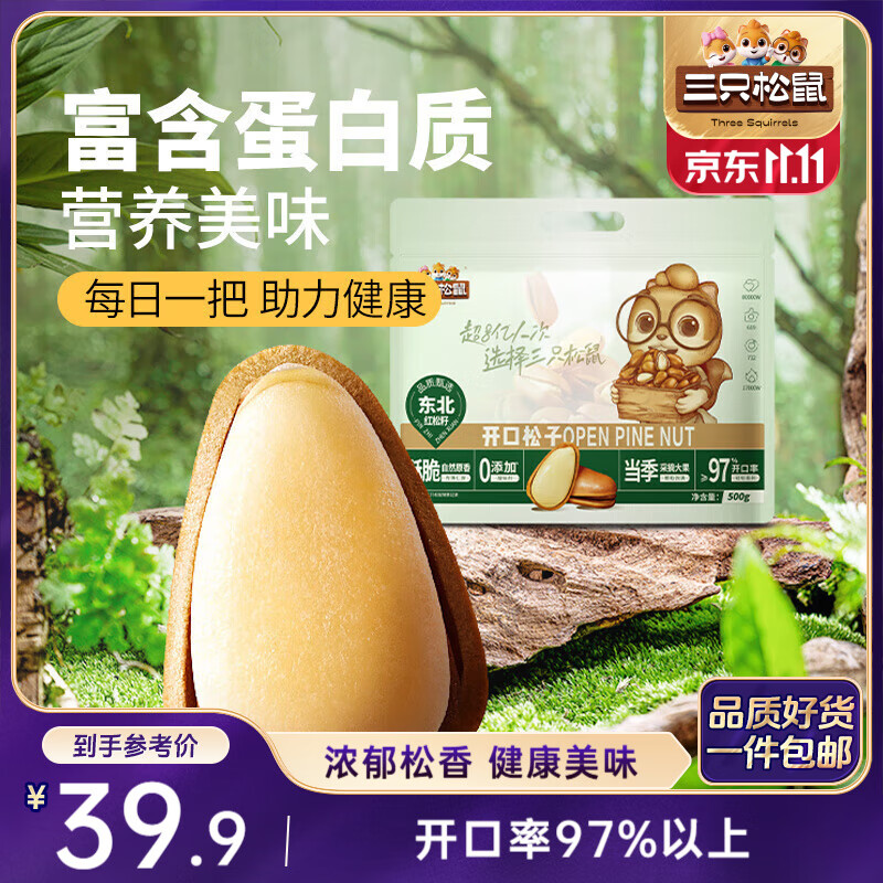 三只松鼠东北松子500g/袋 手剥开口 每日坚果炒货休闲零食地方特产