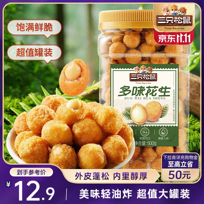 三只松鼠多味花生500g/罐 坚果炒货地方特产休闲零食花生米