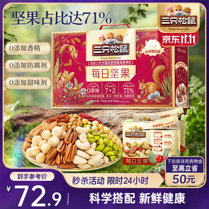 三只松鼠每日坚果孕妇健康混合干果果仁零食礼盒休闲食品节日送礼坚果礼盒 【4+3】每日坚果750g/30袋