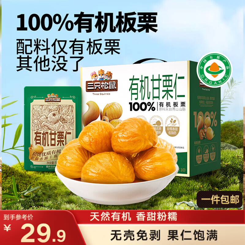 三只松鼠有机甘栗仁500g 熟制即食板栗仁栗子仁坚果零食品 团购送礼
