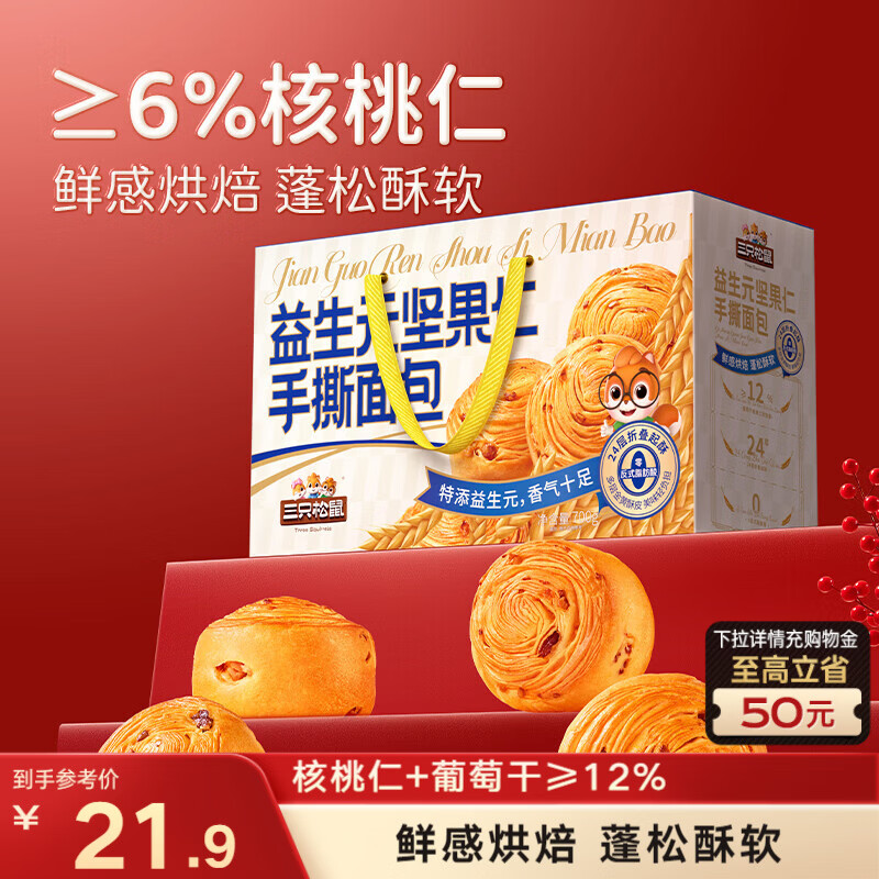 三只松鼠益生元坚果仁手撕面包700g礼盒装 早餐面包代餐过年送礼年货团购