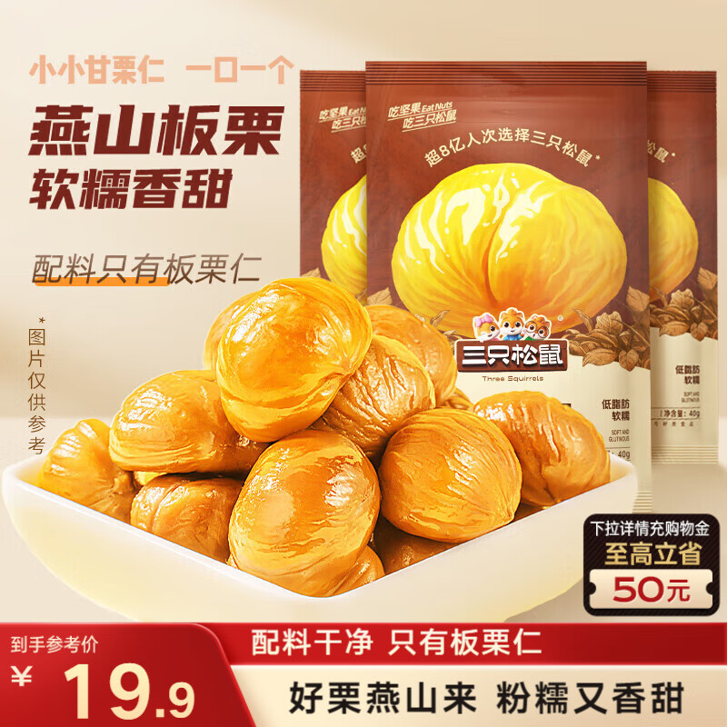 三只松鼠甘栗仁40g*11袋 无壳即食软糯香甜优质板栗仁栗子仁休闲零食坚果