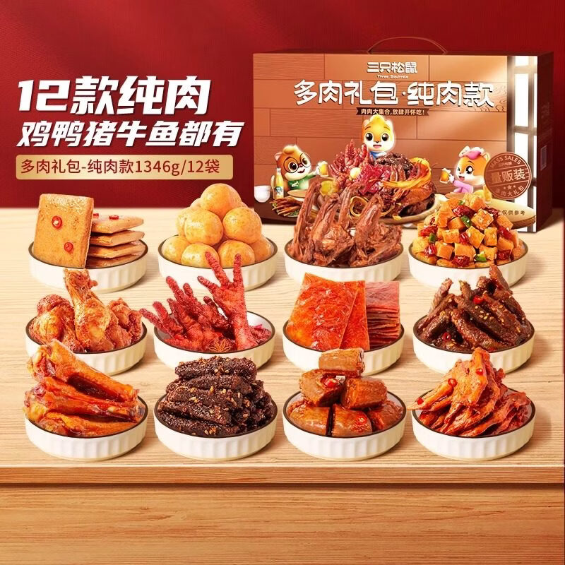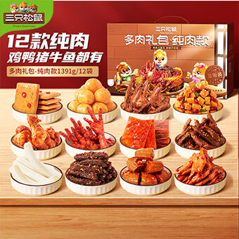 三只松鼠_全肉类零食大礼包_牛肉干鸡爪送礼盒熟休闲食品解馋出游 多肉礼包/纯肉款1346g