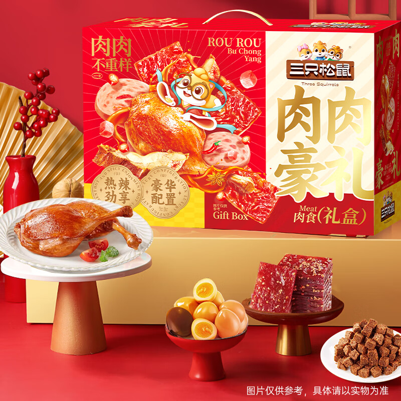 三只松鼠三只松鼠_全肉类零食大礼包牛肉干鸡爪 [聚汇升级款]多福多肉禧瑞款礼包