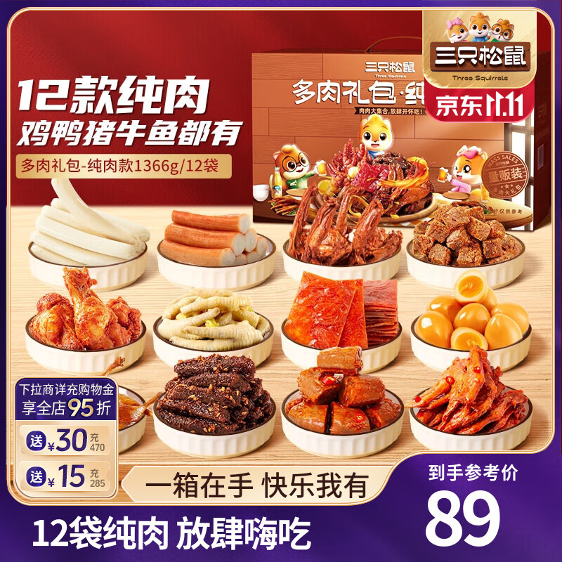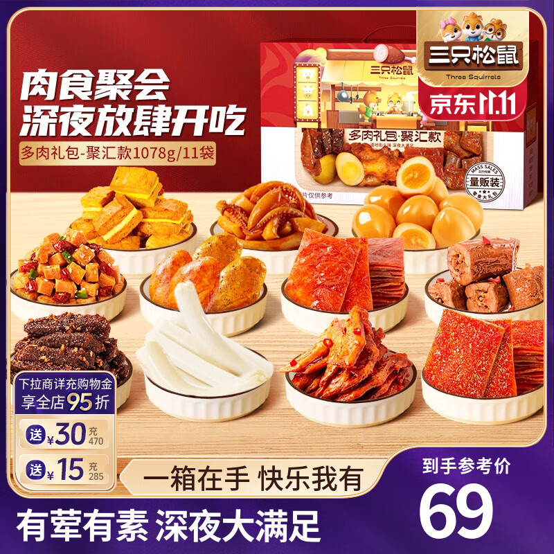 三只松鼠三只松鼠多肉零食大礼包肉脯麻辣纯肉解馋小吃节日礼物送礼 【11袋-聚汇款】肉食大礼包1078g