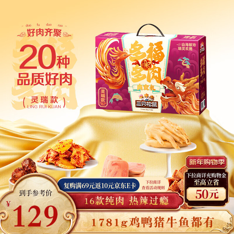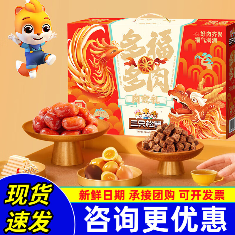 三只松鼠多肉零食大礼包肉食礼盒解馋小吃节日礼送礼礼盒团购员工福利 【15袋-升级款】多福多肉禧瑞款礼包