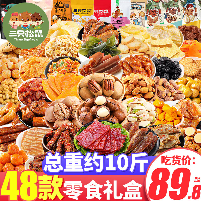 三只松鼠巨型零食大礼包送女生生日礼物儿童好吃的休闲食品办公室豪华整箱 热销40款巨型松鼠零食/松鼠袋装2788g