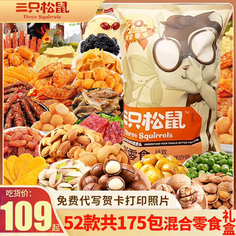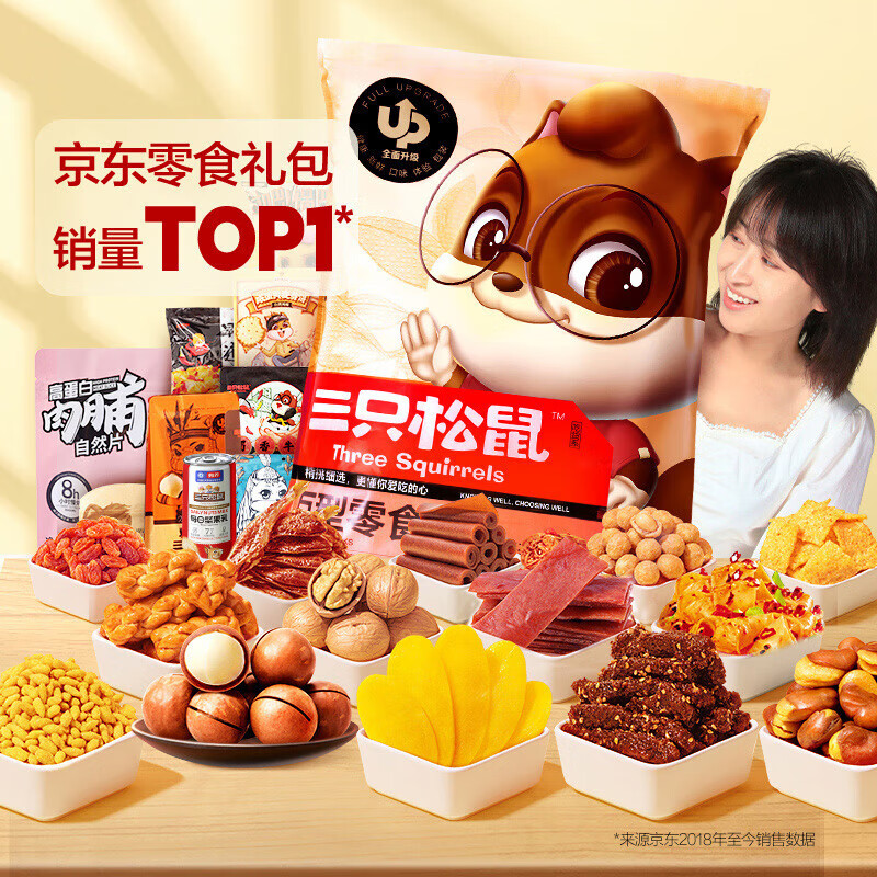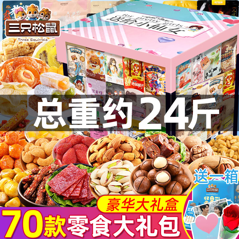 三只松鼠(Three Squirrels)巨型零食大礼包送女友生日礼物礼盒女生休闲食品儿童吃的宿舍整箱 50款纯松鼠零食/小仙女礼盒