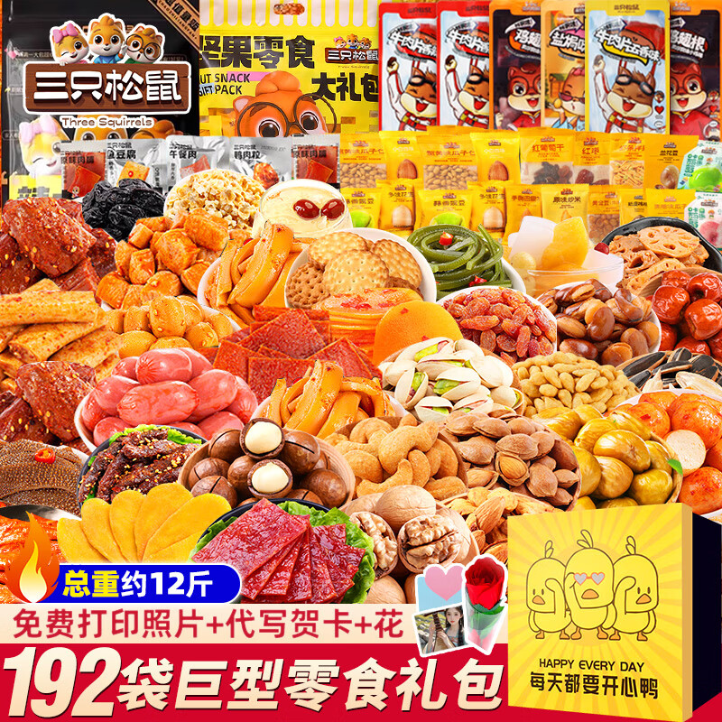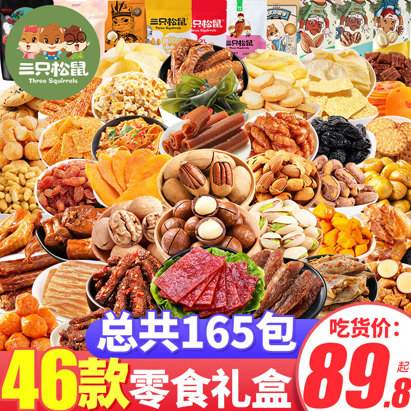 三只松鼠(Three Squirrels)巨型零食大礼包送女友生日礼物礼盒女生休闲食品儿童吃的宿舍整箱 松鼠46款共165包零食/开心鸭礼盒