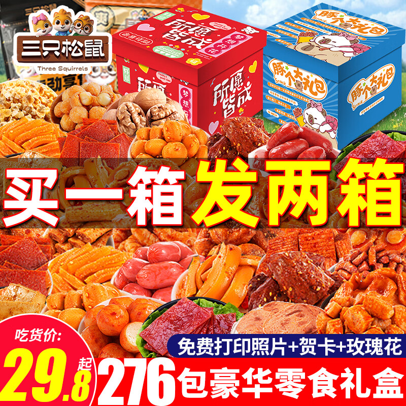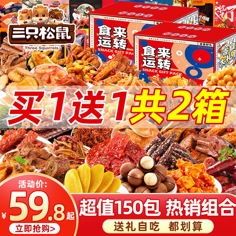 三只松鼠零食大礼包整箱成人儿童生日礼物节日送女友巨型零食礼盒休闲零食 【买1送1】超值特惠150包【共2箱】 【三只松鼠】零食大礼包