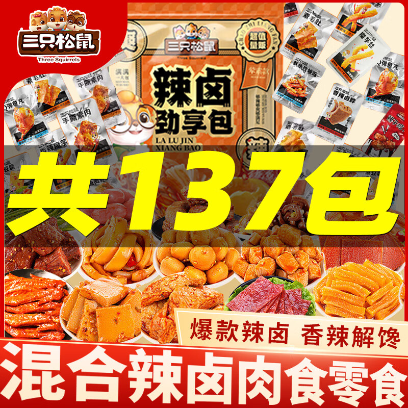 三只松鼠休闲零食大礼包成人解馋整箱送女朋友巨型辣卤味肉类宿舍耐吃学生 【137包混合辣卤+零食】彩箱740g