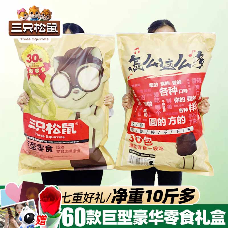 三只松鼠巨型零食大礼包节日生日礼物休闲零食坚果食品解馋小吃母亲节送礼 【经典30袋3040g】巨型礼A款