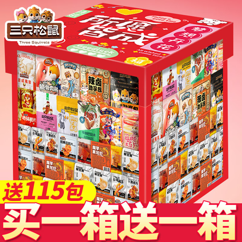 三只松鼠零食大礼包辣卤味肉类成人巨型整箱送女朋友礼物解馋休闲小吃食品 76包辣卤+114包品牌零食/共190包