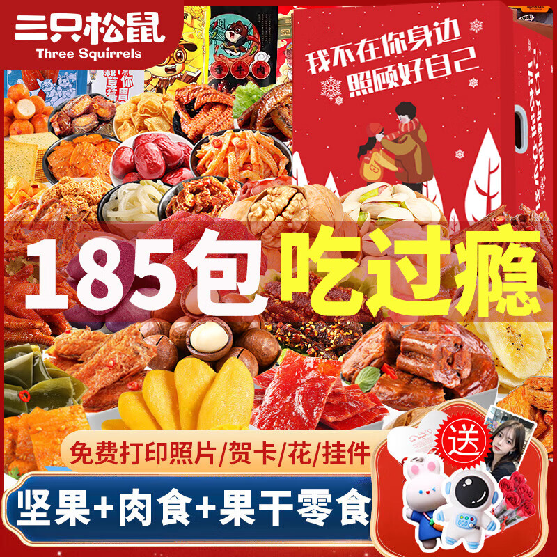 三只松鼠零食大礼包超大巨型整箱送女友男生日礼物辣卤味肉食网红爆款礼盒 185袋巨型礼包-可爱小仙女升级礼盒