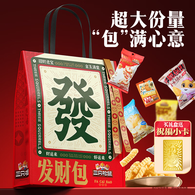 三只松鼠巨型零食大礼包节日生日礼物休闲零食坚果食品解馋小吃七夕节送礼 经典坚果礼/发财包1345g