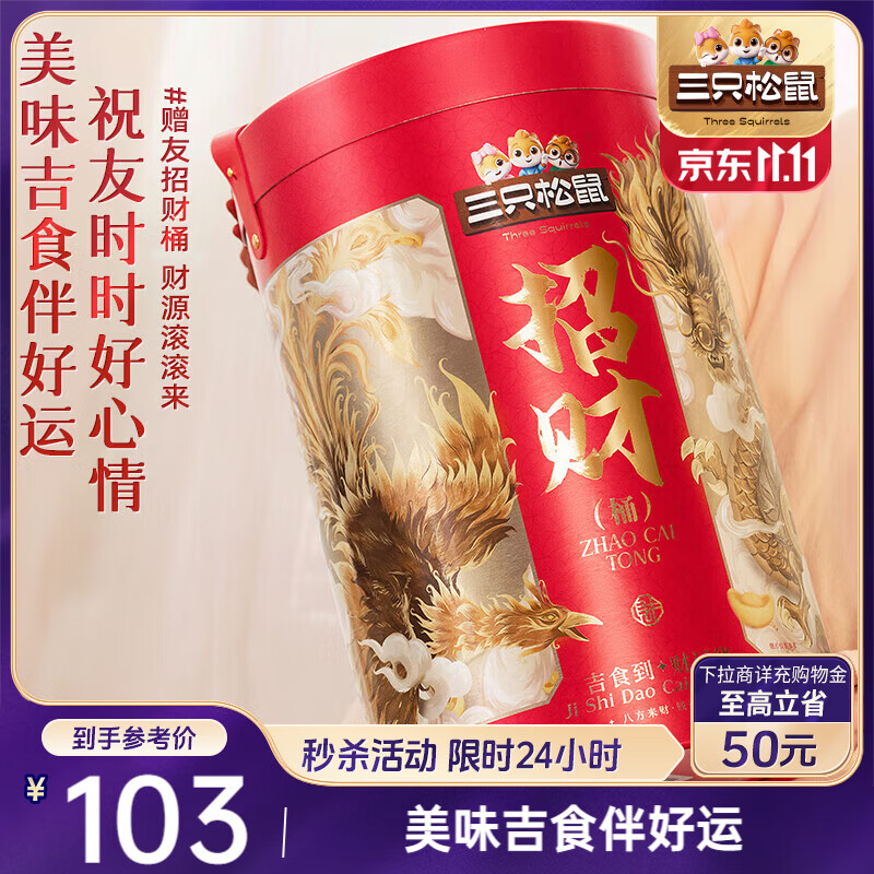 三只松鼠招财桶2511g超4斤休闲巨型零食大礼包坚果蜜饯送女友团购