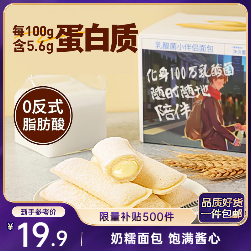三只松鼠乳酸菌小伴侣面包520g/箱手撕营养早餐代餐口袋面包零食
