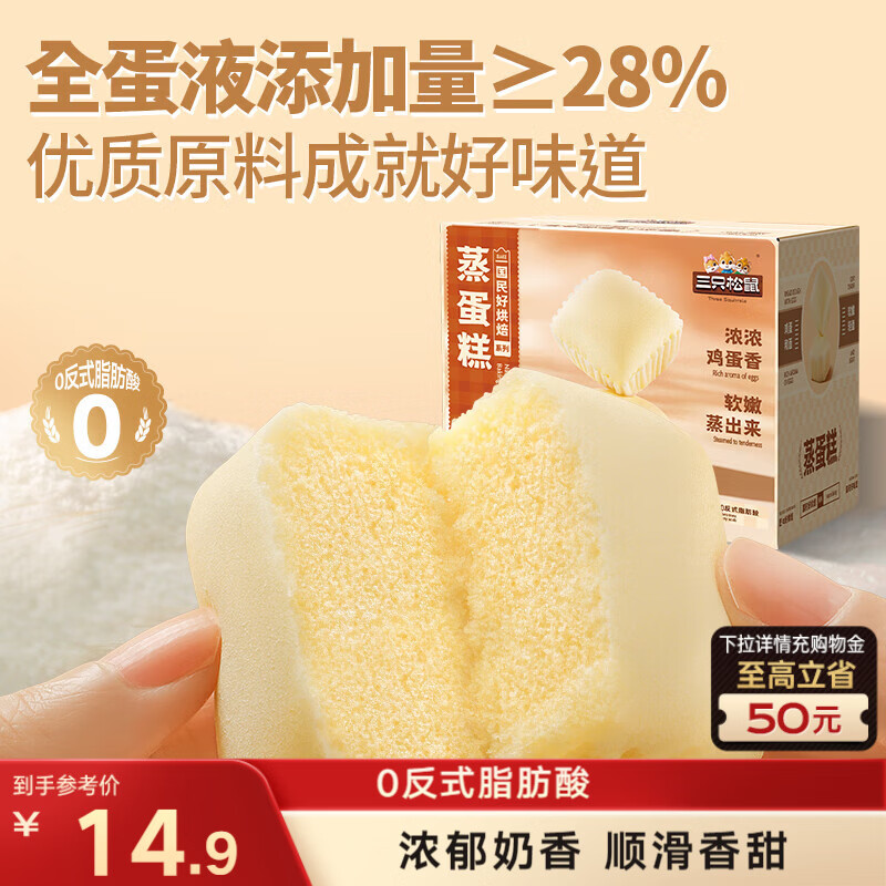 三只松鼠蒸蛋糕 520g/整箱手撕小面包口袋吐司营养早餐生日糕点