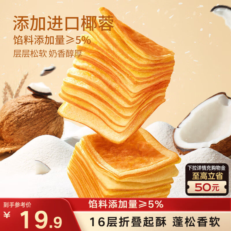 三只松鼠椰蓉水牛乳千层吐司1kg 早餐厚切手撕面包小蛋糕饱腹代餐糕点点心