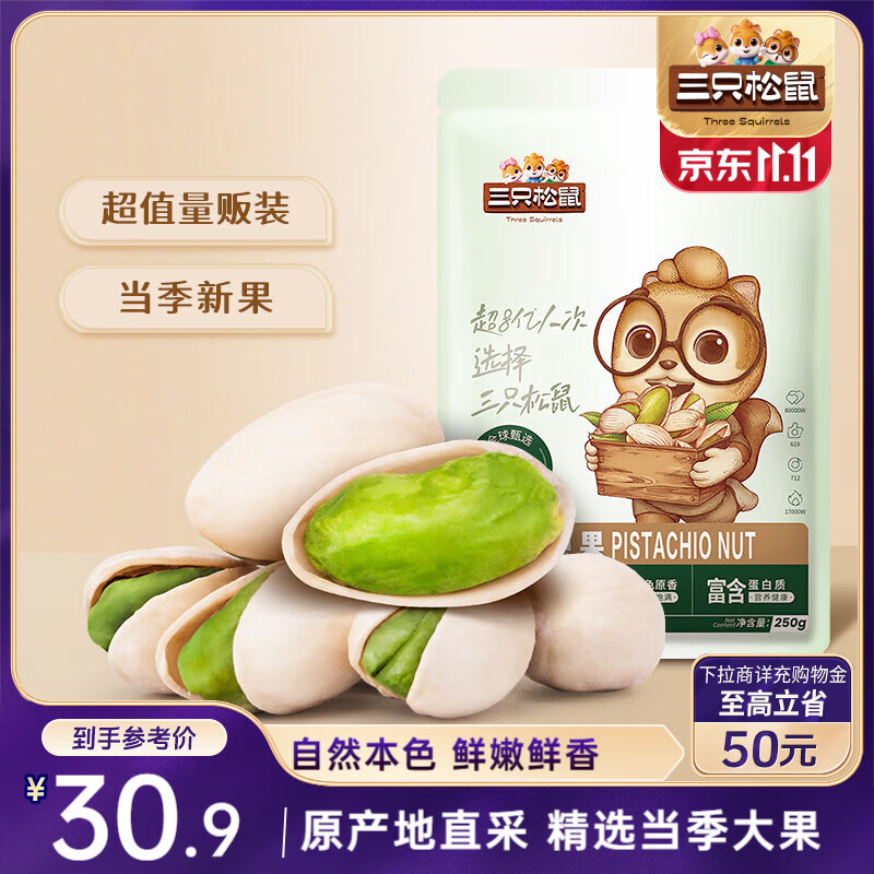 三只松鼠开心果250g/袋 无漂白每日坚果炒货休闲零食地方特产