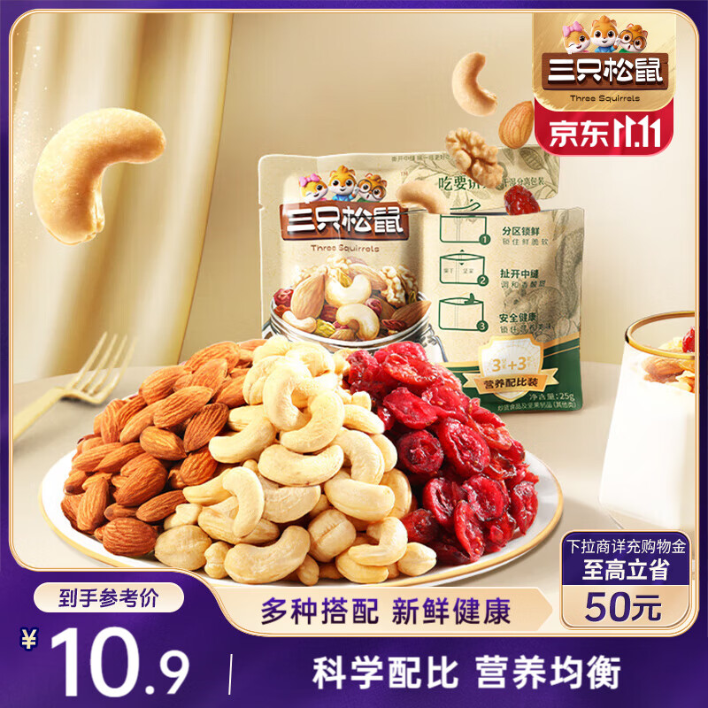三只松鼠 每日坚果孕妇健康早餐休闲零食混合干果果仁罐装节日送礼团购 3+3随心装每日坚果(25g*5袋)