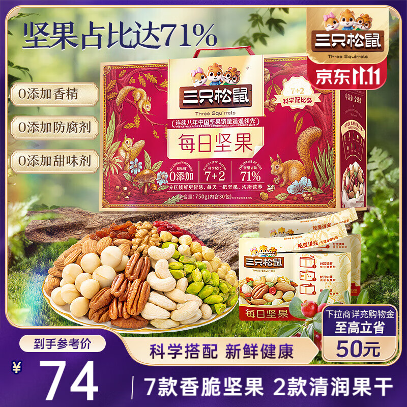 三只松鼠每日坚果孕妇健康混合干果果仁零食礼盒休闲食品节日送礼坚果礼盒 【4+3】每日坚果750g/30袋