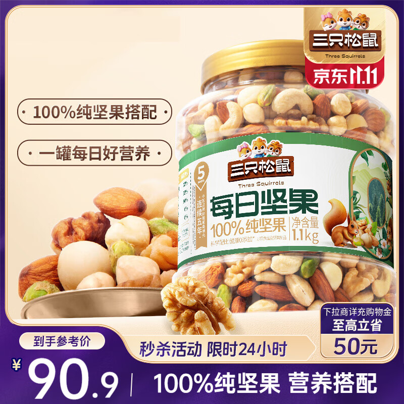 三只松鼠罐装每日坚果纯坚果1.1KG/罐 核桃腰果休闲零食混发 送礼团购