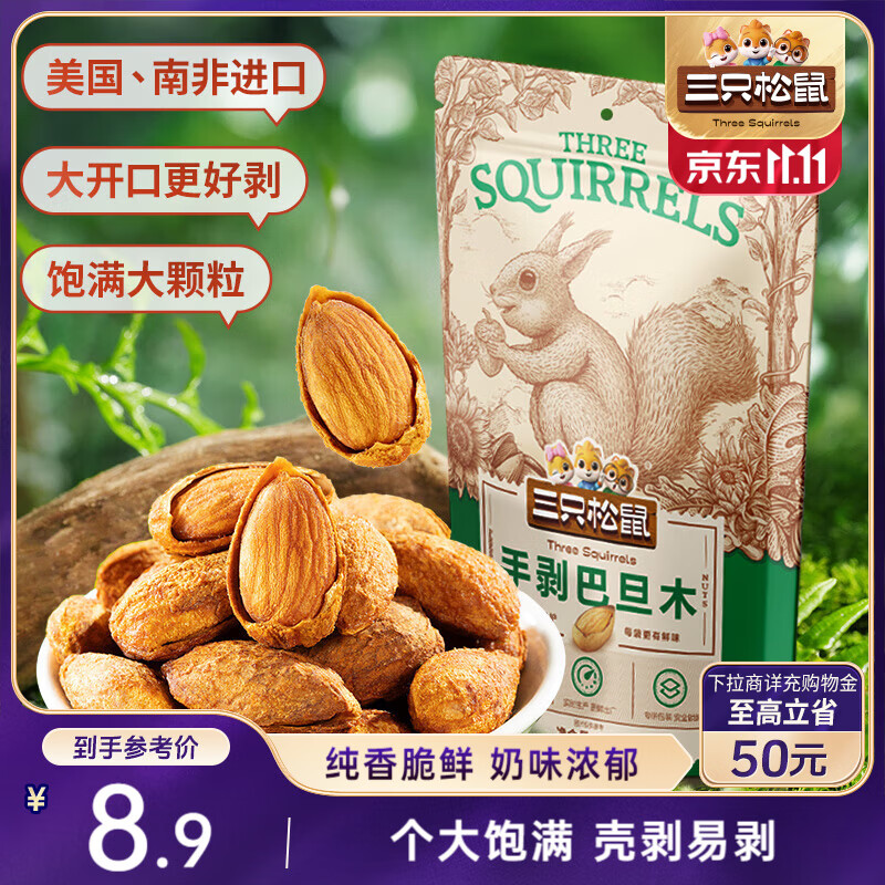 三只松鼠手剥巴旦木 每日坚果干果炒货休闲零食扁核桃120g/袋