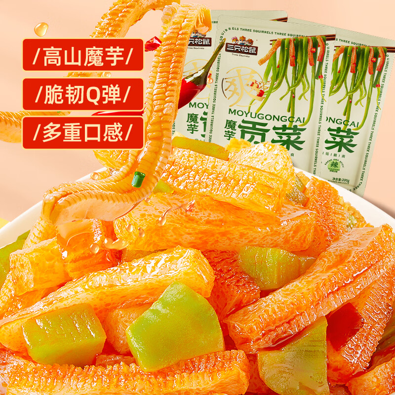 三只松鼠魔芋爽素毛肚香辣味休闲零食辣条小吃办公室解馋即食小零食夜宵 【香辣味】贡菜魔芋200g*1袋