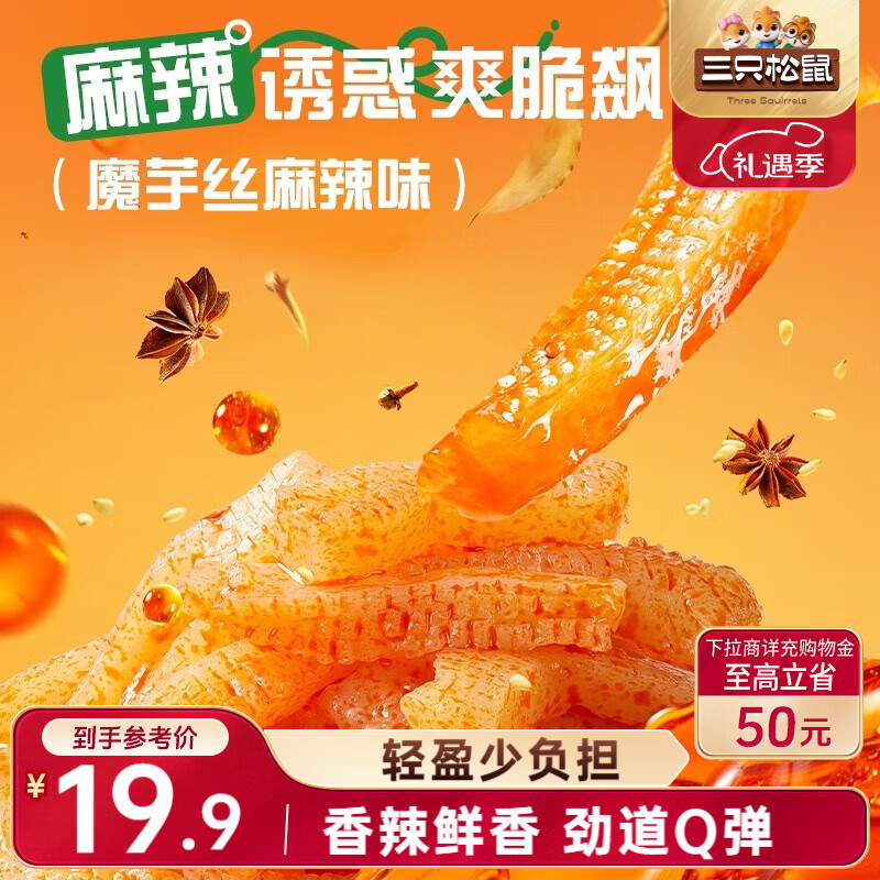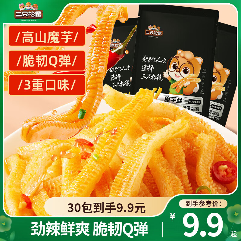 三只松鼠魔芋丝540g/60包 香辣混合口味素食魔芋爽解馋辣条休闲零食卤味