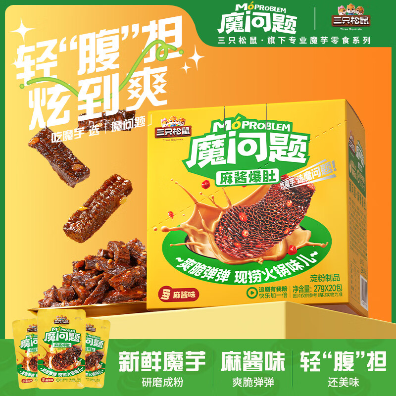 三只松鼠魔芋爽辣条魔芋素毛肚素肉晚上解饿小零食休闲食品小吃 魔问题麻酱爆肚27g*20包