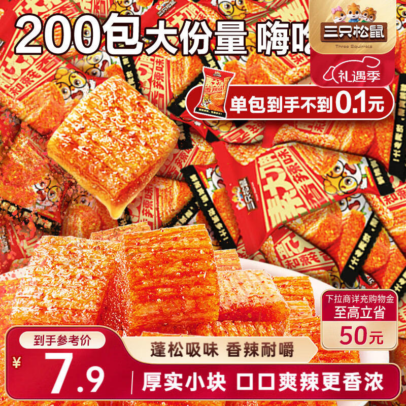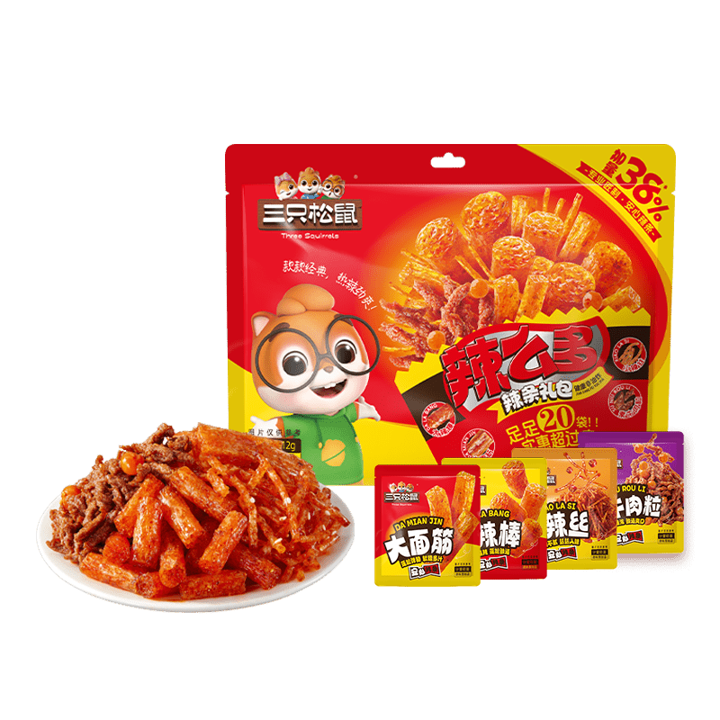 三只松鼠香辣片360g袋装辣条童年回忆面筋零食解馋小袋便携解馋20小袋