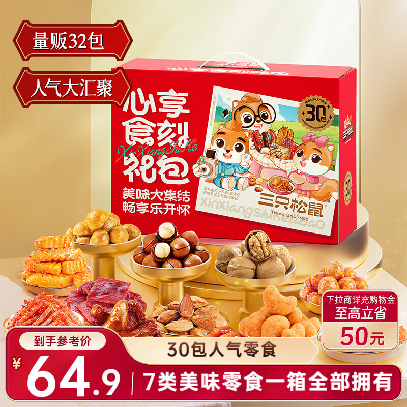 三只松鼠心享食刻零食礼包32袋1363g坚果辣条糕点蜜饯团购圣诞新年送礼