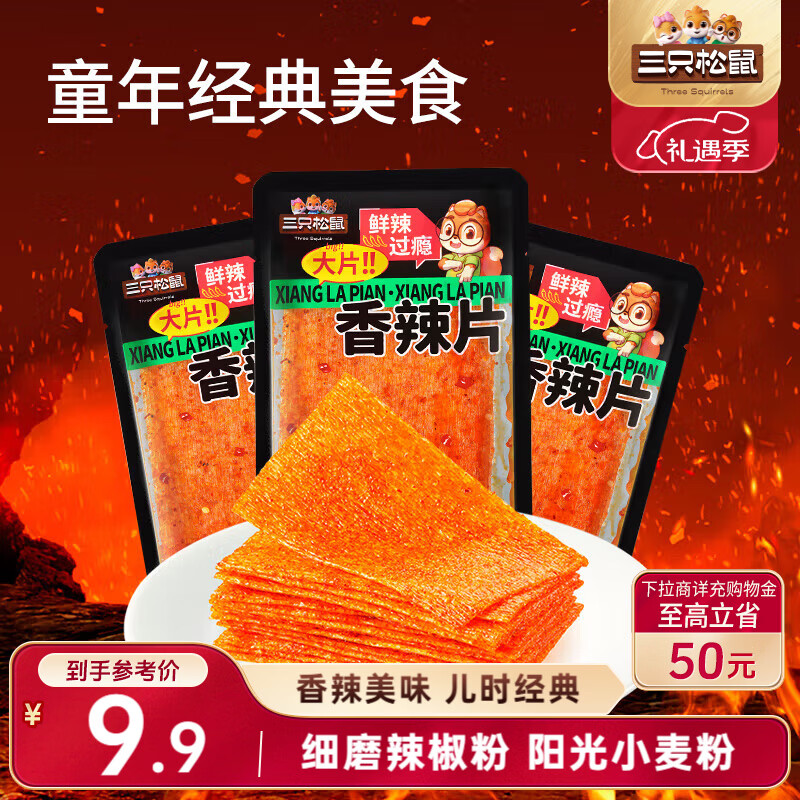 三只松鼠辣条零食面筋童年经典校园老式大辣片豆皮休闲辣条办公室解馋小吃 【经典辣片】Big大辣片 230g *2