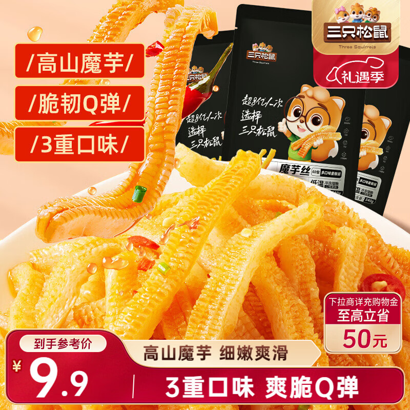 三只松鼠魔芋丝60包540g 素毛肚魔芋爽辣条休闲零食礼包即食网红小吃素食